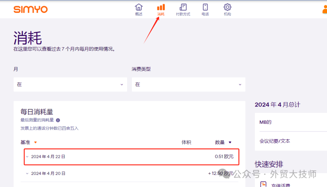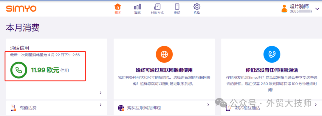 发完短信后,再登入官网查看余额,已经被扣款,果然是0.51欧一条短信。
