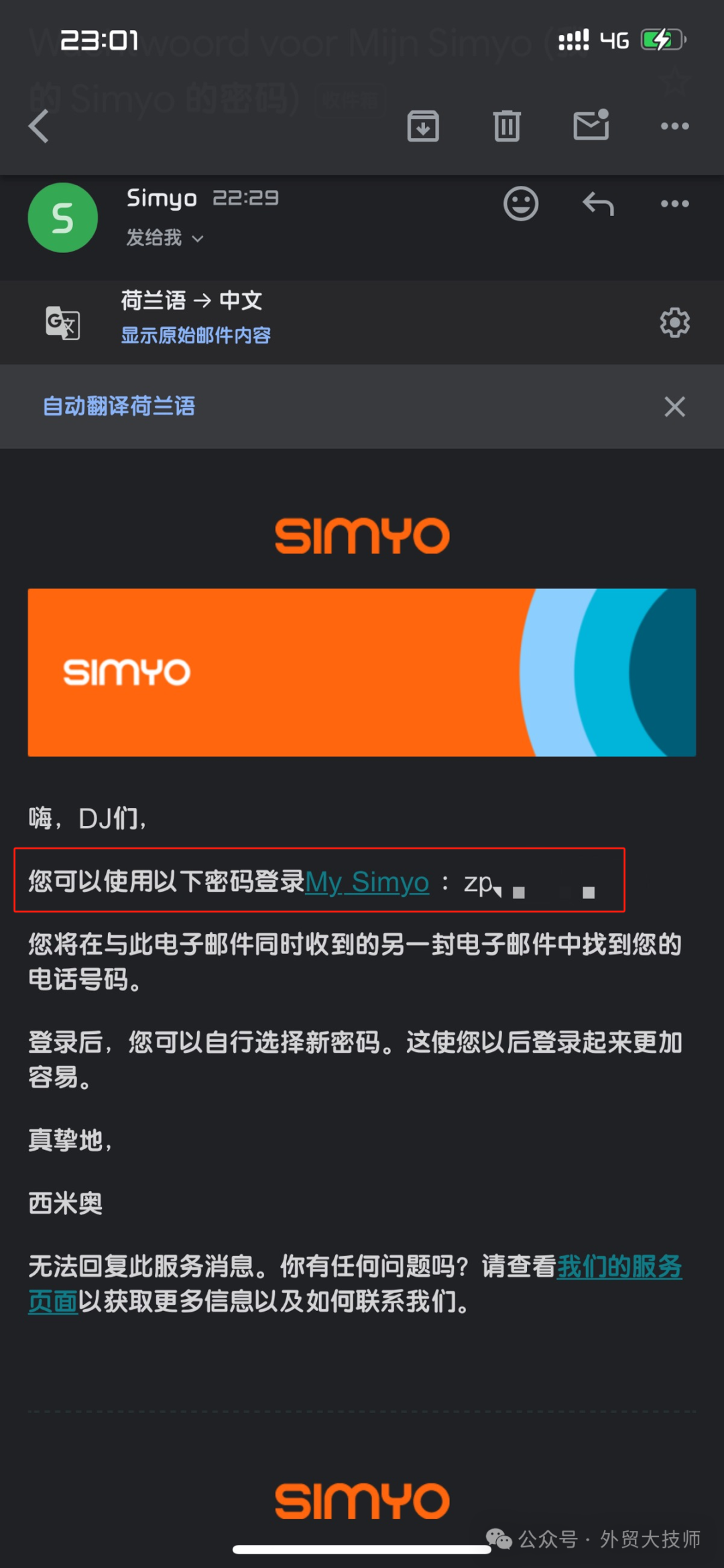 然后大技师打开飞行模式,再关掉飞行模式,很快就收到了simyo发来的系统短信。