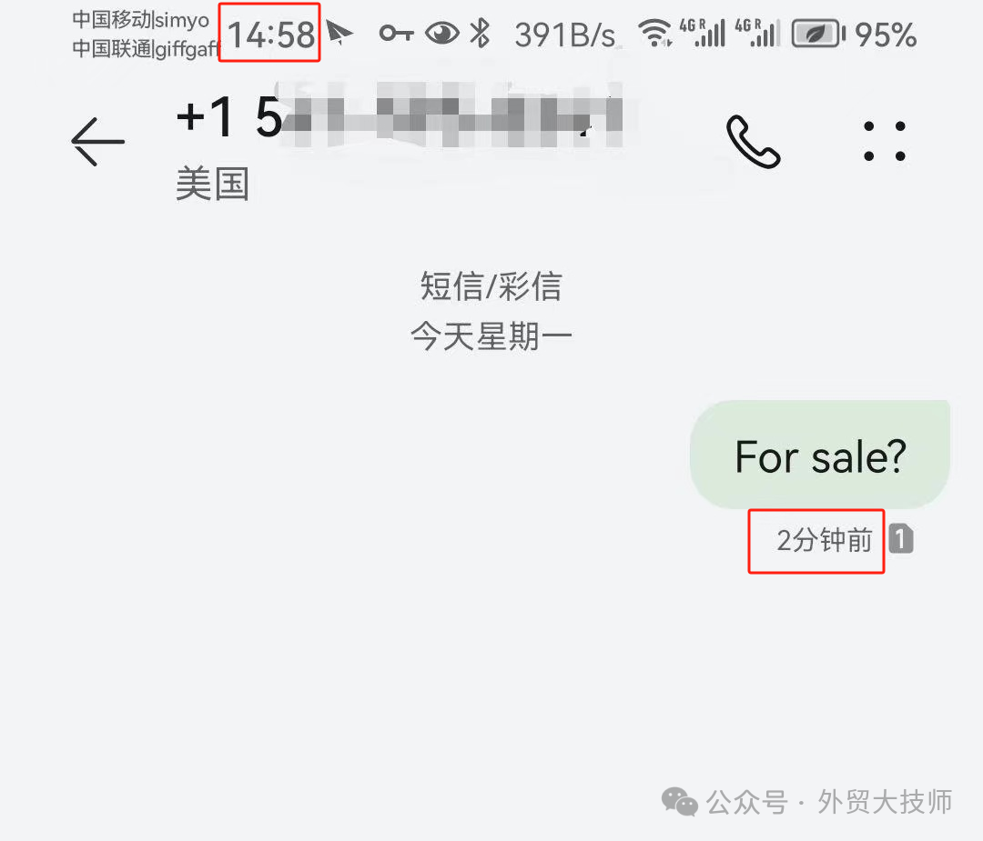 因为simyo最便宜的保号机制是半年主动发一次短信,于是大技师决定再演示一下保号过程。大技师用这张卡给大技师的一个google voice《我建议外贸人应该人手一个美国电话号码—Google Voice》发了一条短信。